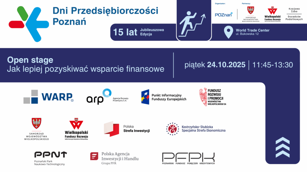Już 24 października 2025 roku na Międzynarodowych Targach Poznańskich odbędzie się kolejna edycja Dni Przedsiębiorczości Poznań – jednego z najważniejszych wydarzeń dla lokalnych przedsiębiorców. Tegoroczne hasło „Zarabiaj więcej. Lepiej zarządzaj finansami i podatkami” skupi się na tematach kluczowych dla rozwoju firm: finansach, podatkach, innowacjach i transformacji ekologicznej.