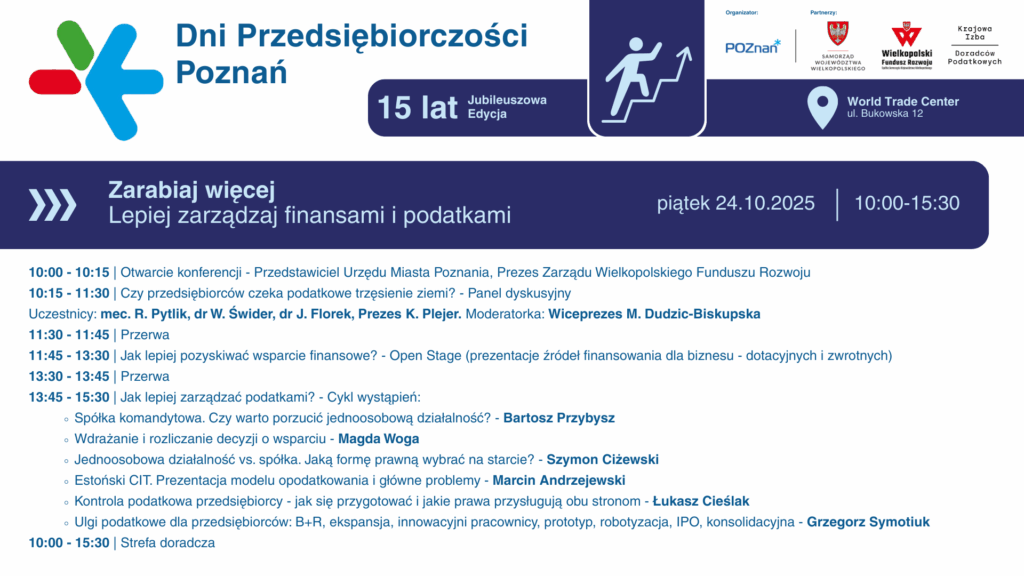 Wydarzenie łączy wiedzę ekonomiczną, podatkową i finansową z praktyką przedsiębiorczą.