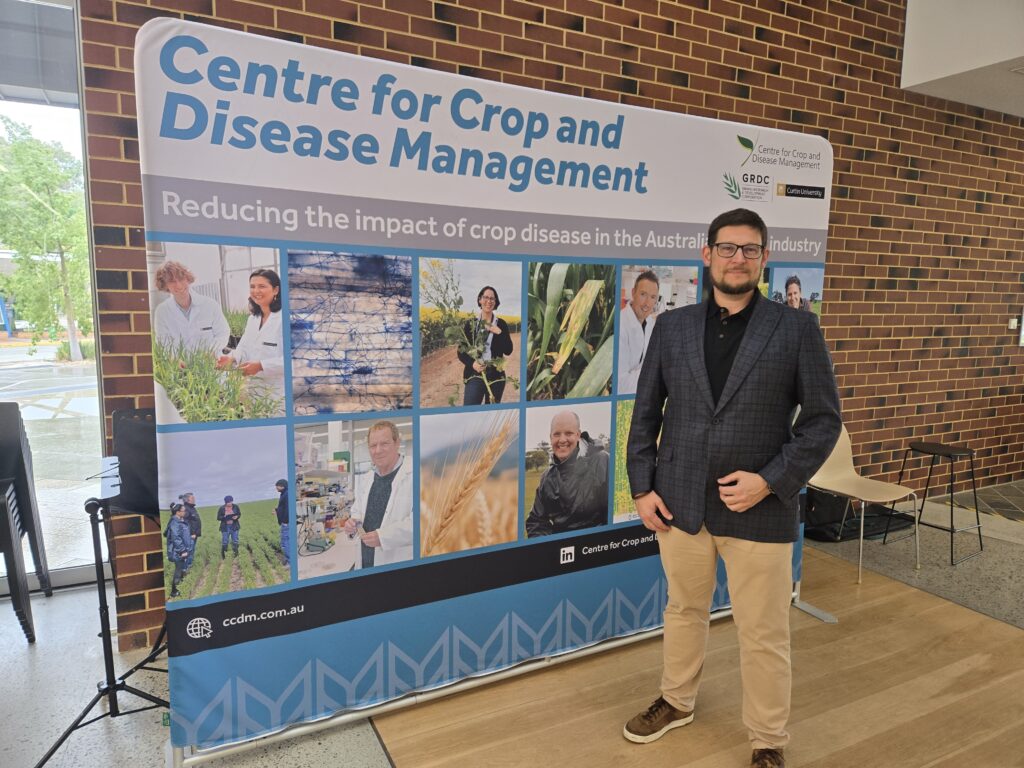 Podczas tego samego wyjazdu konferencyjnego, korzystając z zaproszenia Centre for Crop and Disease Management (CCDM) ), Curtin University w Perth, dr Śmiglak wygłosił godzinną prelekcje podkreślającą dokonania zespołu PPNT w tematyce indukcji odporności roślin i ich biostymulacji wraz z późniejszą dyskusją na temat potencjalnych wspólnych prac badawczych w zakresie ochrony roślin.