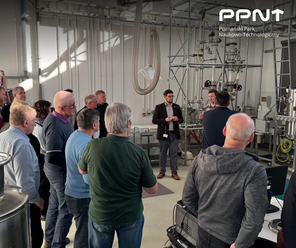 Podczas wizyty opowiedzieliśmy o historii powstania projektowalnych salicylanów, od pierwszych koncepcji badawczych, przez prace laboratoryjne i rozwój technologii, aż po etap wdrażania rozwiązań, które dziś trafiają do praktyki rolniczej. Goście mieli również okazję poznać bliżej działalność całej jednostki oraz zobaczyć zaplecze badawcze PPNT, w którym rozwijane są nowe technologie.