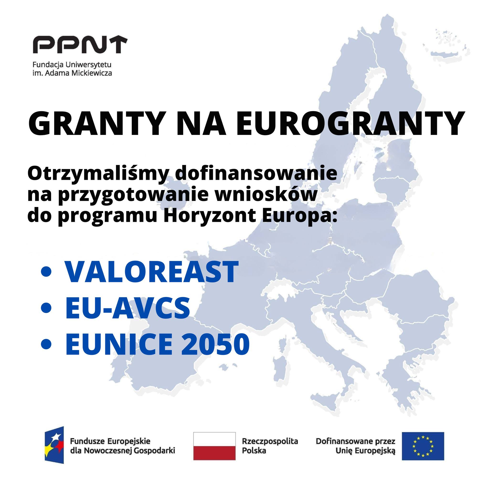 Wysokość wkładu Funduszy Europejskich: 100%, tj.: 52.670 zł - Projekt pn.: ”VALOREAST – Knowledge Valorisation Ecosystem for a Sustainable Bioeconomy in Central and Eastern Europe”, został złożony na konkurs w ramach programu Horyzont Europa: HORIZON-WIDERA-2025-06-ERA-01”. FUAM występowała w roli lidera pakietu pracy w konsorcjum z udziałem partnerów z Węgier, Czech, Serbii, Rumunii, Hiszpanii, Belgii, Finlandii.Celem projektu jest stworzenie trwałej sieci pośredników waloryzacji wiedzy w krajach Widening, ze szczególnym uwzględnieniem sektora biogospodarki. Projekt koncentruje się na wzmacnianiu kompetencji instytucji wspierających innowacje (np. inkubatorów, parków naukowych) w zakresie przekształcania wyników badań w rozwiązania o znaczeniu gospodarczym i społecznym.Przygotowanie wniosku do Horyzontu Europa trwało w okresie lipiec-wrzesień 2025r., natomiast okres realizacji projektu w ramach Grantu na Eurogranty to lipiec 2025 – marzec 2026.Wartość projektu (Granty na Eurogranty): 52.670 zł